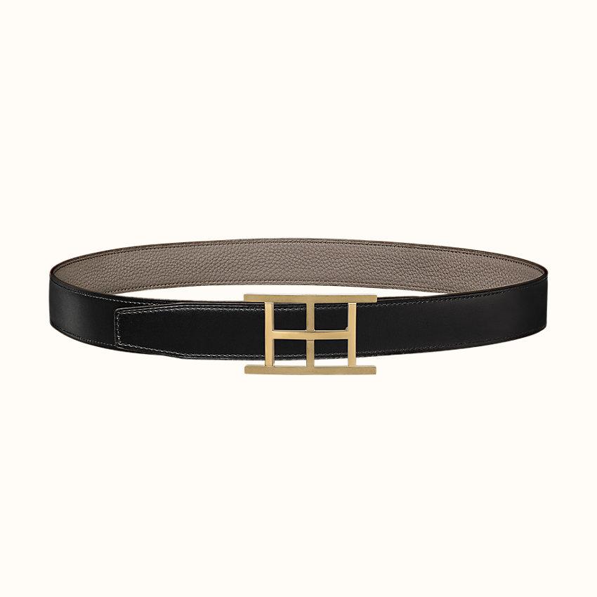 ライトゴールドのメタルベルトバックル。Hの内側は、相互接続された2つのHで装飾されています。これらのHは、より立体的で鮮やかなものにするために研磨およびレーザー研磨されています。フランス製&135牛革とトーゴカーフスキンの両面レザーベルト。フランス製。